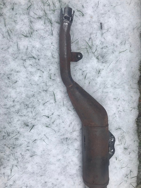 Das Rostrohr aus deinem letzten Bild will mich immer noch nicht so richtig überzeugen. Kannst du mal ein Bild vom kompletten Auspuff machen? Oder anders, leg das Rohr auf einen Schraubstockamboss und schlag mit einem Stahlhammer drauf, als wenn du eine kleine flache Beule reinschlagen wolltest. Federt das Rohr und klingt kann man noch was machen, wenn nicht ist das nur noch Rostmatsche und kann ab. :D