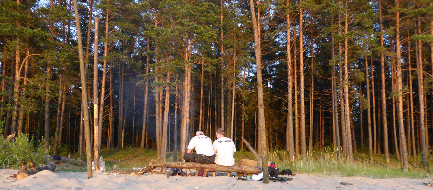 In der Nacht und am Morgen regnete es und die Schauer begleiteten uns auch noch beim Frühstück in der Grillhütte. Dort war es dann sehr familiär, denn auch Esten mögen gern im Trockenen essen. So boten wir uns gegenseitig von unseren Vorräten an und es war - gemessen an der Auswahl - wahrscheinlich das reichhaltigste Frühstück der Reise.
