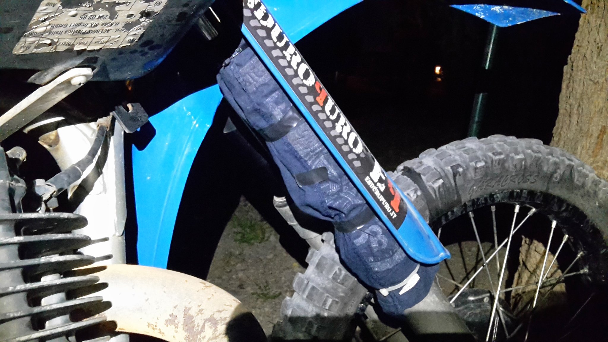 Mein rechtes Gabelrohr ist leider undicht. Ich baue eine Stoffhülle, damit meine Hose nicht so vollgesaut wird.