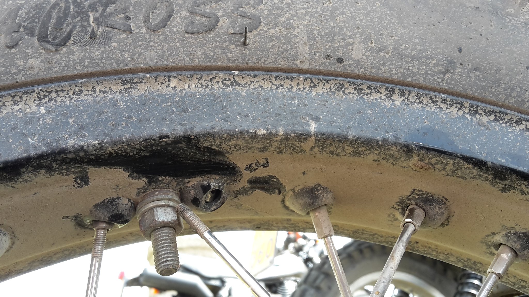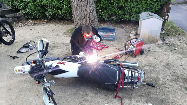 Am dritten Tag hat sich meine Kettenlaufrolle verabschiedet, mein Kennzeichen ist abgebrochen, Stephans Fussraste ist aus dem Rahmen gebrochen und Johny hat hinten einen schleichenden Platten.