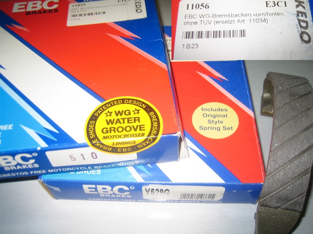 Ich habe mit den EBC WaterGroove sehr schlechte Erfahrungen gemacht. Die Beläge waren nach 1000km so derart abgefahren, dass sich den Hebel an der Trommel um einen Zahn hätte versetzen müssen. Die Bremswirkung war auch nicht so der Hit. Ich habe mir dann die OEM-Ware bei Kedo geholt. Die halten und bremsen auch noch vorzüglich.