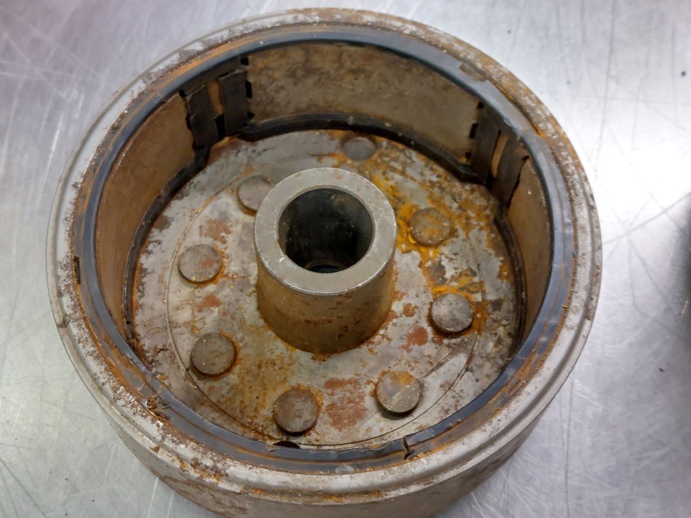 Unabhängig von einander haben zwei Fachwerkstätten, die sich mit XT500 eigentlich ganz gut auskennen, erklärt, das Problem liege im Polrad: Die Magnete hätten sich gelöst. Das Polrad selbst sitzt spielfrei fest.