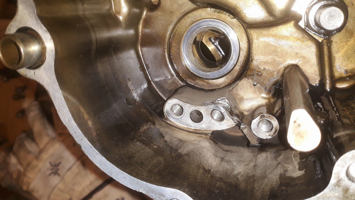 Auf deinem Bild sieht man übrigens links schon die Macken im Alu, wo im ungünstigsten Fall das Bruchstück vom Kickerzahnrad durch die Gehäusewandung gedrückt wird.