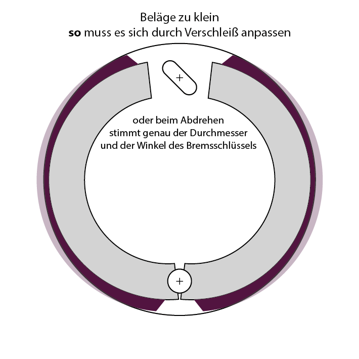 und schon bei minimalem Trommelverschleiß passt der "kleinere" Radius der Beläge