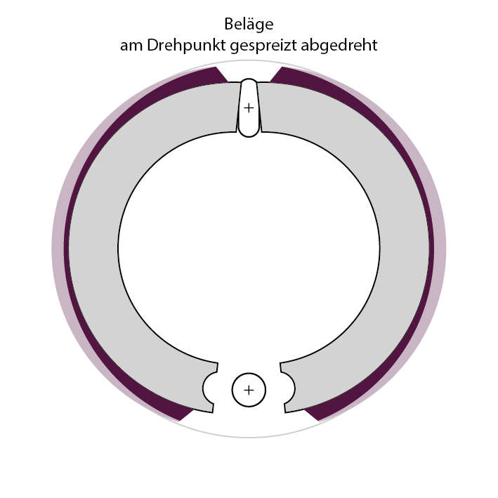 Man nimmt - wenn man an dem Drehzapfen etwas einlegt - an der Stelle vom Belag was weg