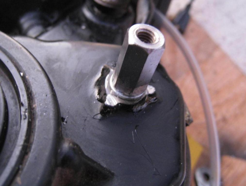 Alles natürlich eingeklebt, da man sofort nach ein paar Millimetern im Motorinneren angelangt, zumindest halbseitig im unteren Teil wenn man ca. 10 mm hinein bohrt. Aber Vorsicht das Material ist butterweich, nur bis zum 2. Gewindebohrer schneiden und den auch noch vorne abflachen damit man mit dem Gewinde soweit wie möglich bis zum Bohrlochende kommt.