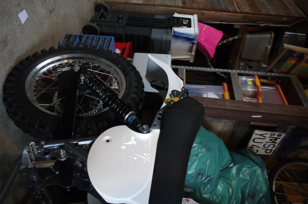 Der Lattenrost kommt auch noch raus... Großes Kind zieht aus, Motorrädle darf in der kalten Jahreszeit einziehen... meine beste Ehefrau hat es erlaubt. Teile brauch ich grad keine... ausser evtl die Distanzhülse am Vorderrad für die Alte Gabel (wenn das nen Unterschied denn macht)...