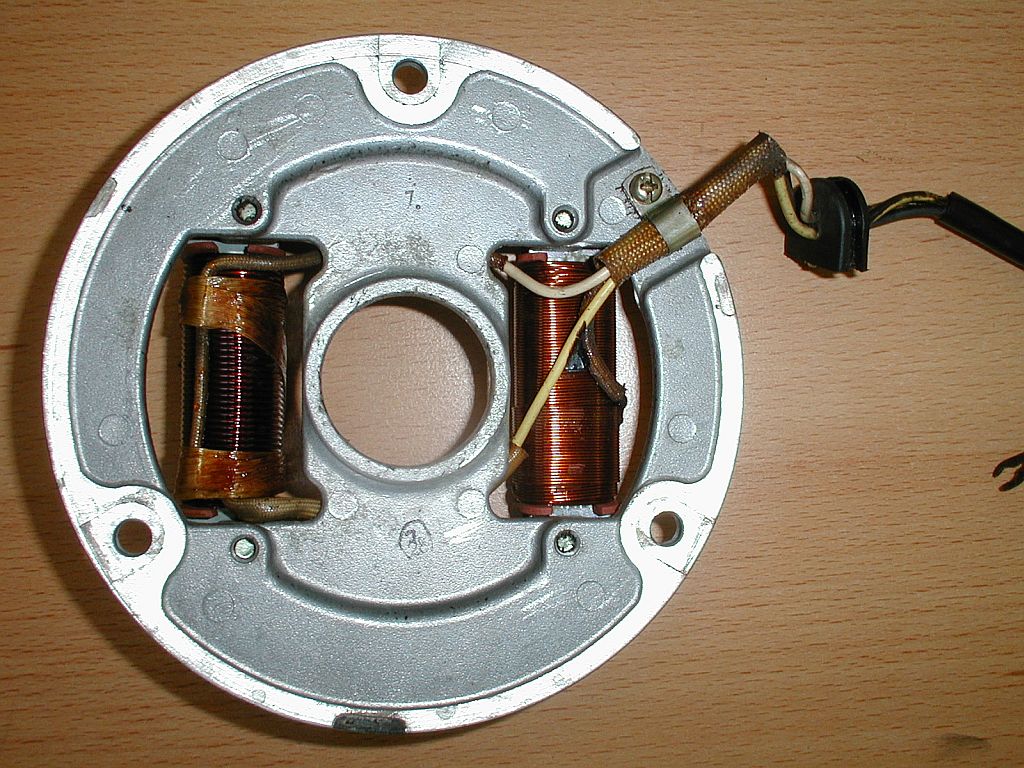 Edith: Die Spule mit dem dünnen Draht ist für die Zündung. Solange es also funkt ist alles OK. Fährst Du immer mit Licht?