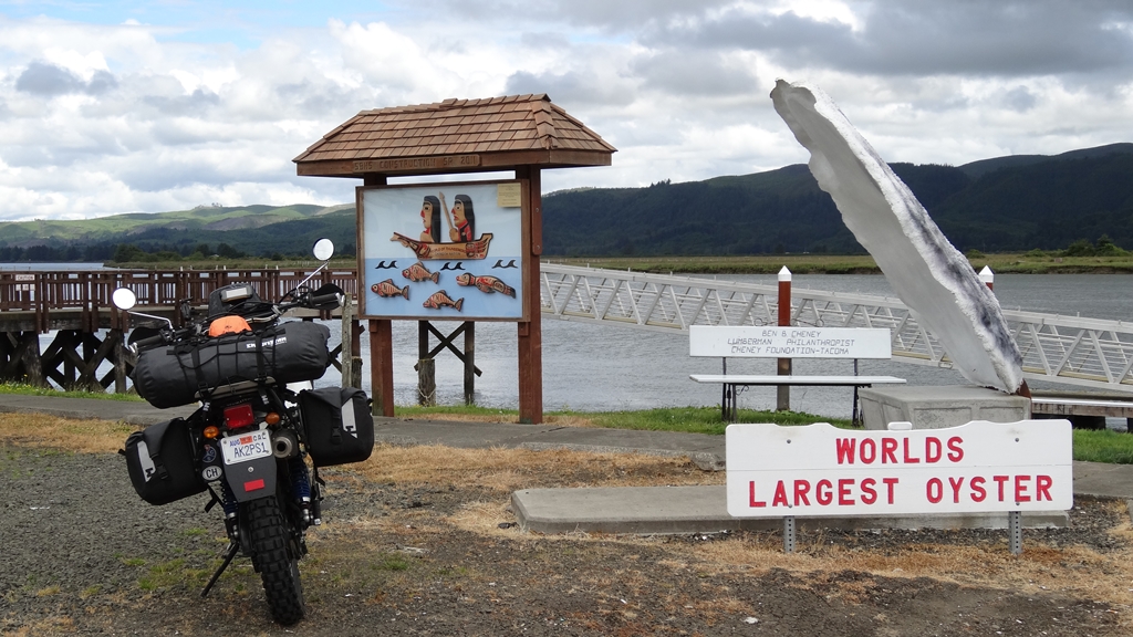 Die Fahrt über die Freeways raus aus Seattle ist alles andere als berauschend. Je in jede Richtung fünf Spuren, Geschwindigkeiten teilweise deutlich über 100 km/h. Das ist definitiv kein XT500 Revier. Dafür ist die anschliessende Etappe durch Washington nach Astoria in Oregon abwechslungsreich, verläuft durch tropisch anmutende Regenwälder und liefert uns am Ende auf einem typischen US Campground den Mücken zum Frass aus. Hier bewährt sich aber ein weiteres Mal das tolle, extrem leichte Hubba Hubba Zelt von MSR. Anstelle einem Innenzelt hat es nur gerade ein Mosquitonetz und lässt damit die unangenehmen Biester draussen bei trotzdem guter Belüftung. Den Abend verbringen wir anschliessend im Fort Stevens State Park, wo wir mit Axel’s noch in Alaska gekauftem Feldstecher eine sehr vielfältige Flora und Fauna beobachten können.