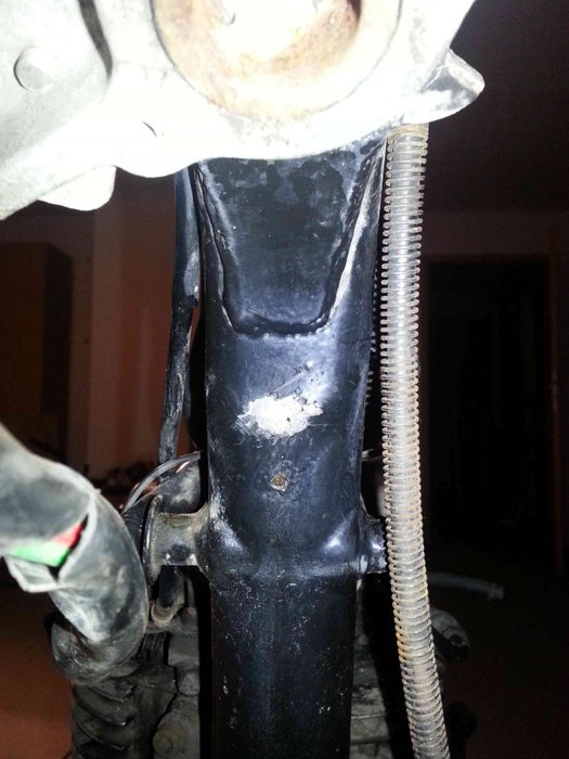 Jetzt die Frage: Hat schon mal jemand den Rahmen an der Stelle seziert und kann mir sagen, warum es dort von innen durchrosten kann? Soll/kann ich schweissen oder sollte ich den Rahmen ersetzen? Es ist eine 77er XT.