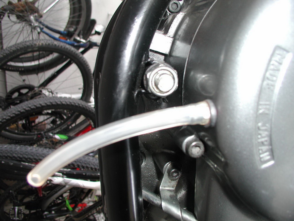 Der oben am Gehäuse links liegende Entlüftungsschnörpel sollte einen Schlauch unter die Sitzbank haben