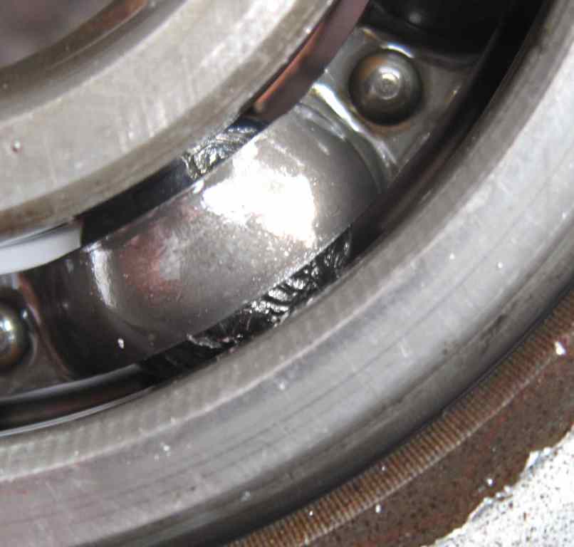 Eine Kugel des linken Kurbelwellenlagers sieht aus, wie die Mondoberfläche (Foto).