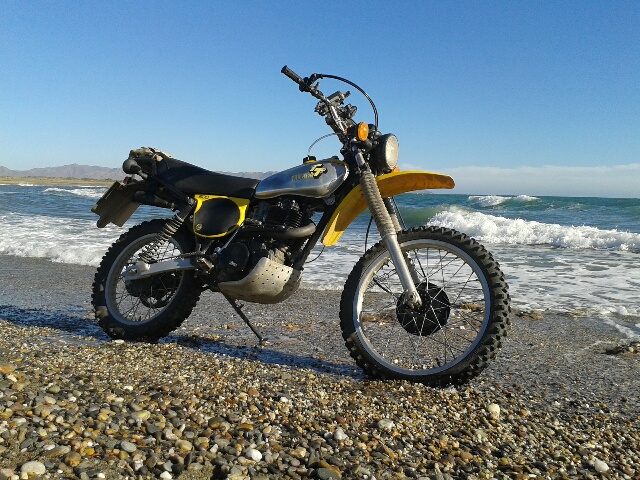 23.09.2014 - Oh, oh, oh. Heute haben wir es ein wenig übertrieben. Der Hintern und die Gashand tun weh. Nach Sichtung der Wolkenlage haben wir uns für einen erneuten Versuch in die Sierra Nevada entschieden. Für die Anreise wählten wir die erste Hälfte der Route B5 bis zur Sternwarte. Superklasse. Erst ging es eine Stunde durch trockene Flussbetten und dann durch die Berge. Über 60 km Pisten bis zur Strasse bei der Sternwarte. Doch dort oben konnten wir sehen, dass da wieder Wolken über der Sierra Nevada hängen. Also haben wir uns spontan für B11 durch die Sierra Alhamilla und die B13 am Meer entschieden. Nach 20km Autobahn erreichten wir die Filmstudios der Western aus vergangenen Zeiten. Dort ging es hoch zu Sendemasten und Radarstationen. Die Ausblicke aufs Meer und die Berge waren gigantisch. Wieder am Fusse der Berge angekommen ging es nochmal für 20km auf die Autobahn und schon waren wir am Meer. Zugegeben, die B13 hatte nix mit Offroad zu tun, aber wir bereuten keinen km. Mit den XTs am Strand und beim Leuchtturm am Capo Gata - super. Dort entschieden wir neue Züge für unsere Kupplungen einzubauen (easy clutch by XTom). Bei beiden XTs waren nur noch 2 oder 3 Drähte heil. Nun hatten wir nur noch 190km Autobahn vor uns. Schade, dass es schon 19.30 Uhr war. Das würde wohl spät werden. Nach 90km tankten wir zum dritten Mal an diesem Tag. In Guadix assen wir eine Pizza und erreichten unsere Höhle erst um 23.30 Uhr. Über 400km an diesem Tag ... Wahnsinn! Aber eben auch wahnsinnig dchön.