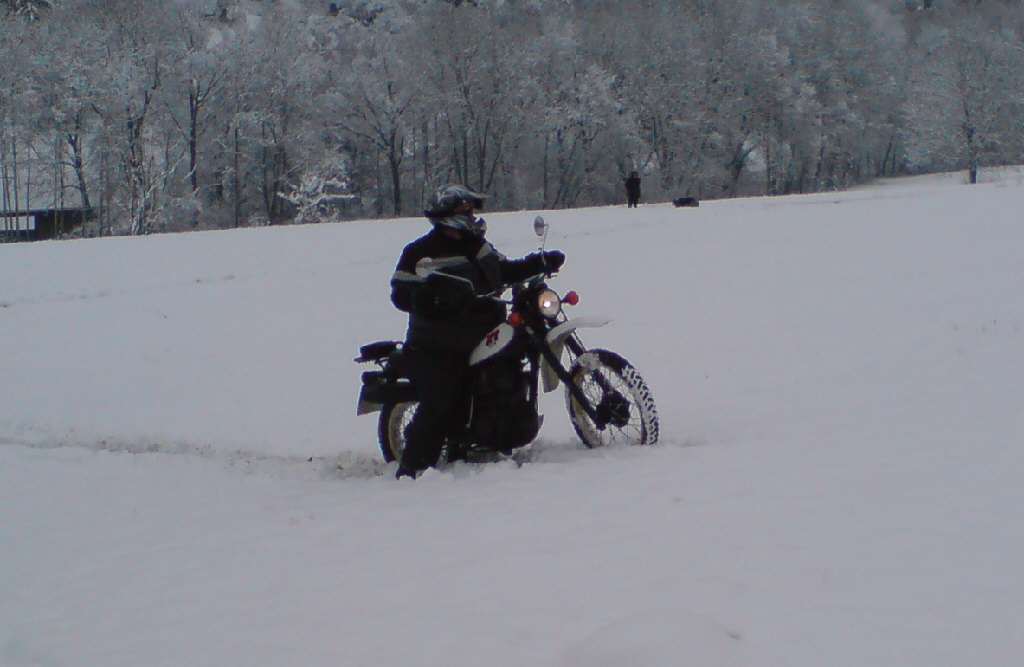 Zu sehen war eine Winterlandschaft, im Hintergrund ein Endurist der auf einer 500er durch den Schnee pflügt.