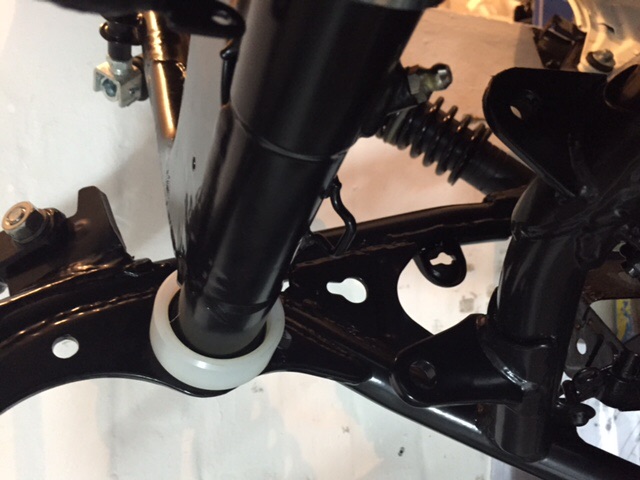 Die Schwinge ist gepulvert, sieht richtig gut aus und sitzt auch super toll in den neuen Lagern.