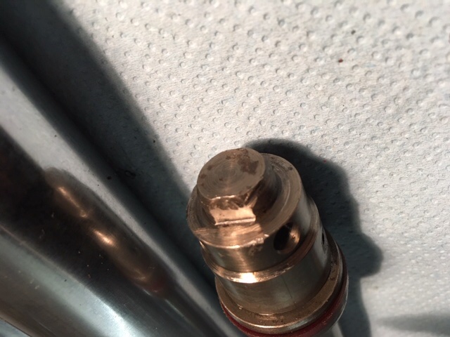soweit so gut. Übrigens braucht man zum Lösen der Inbusschraube am unteren Ende des Tauchrohrs nichts zusammenzuschweißen. Ich habe eine 12er Schraube mit zwei Muttern gekontert, eine 19er Nuss drauf und mit zwei langen und einer kurzen Verlängerung kommt man locker unten an, um den Innenteil gegenzuhalten.