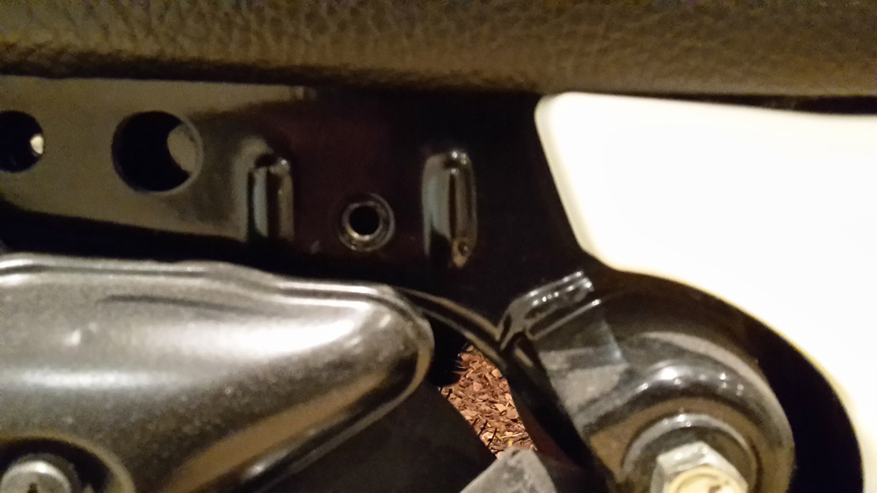 Gewinde von Sitzbankgurt im Rahmen und die beiden Prägungen im Rahmen