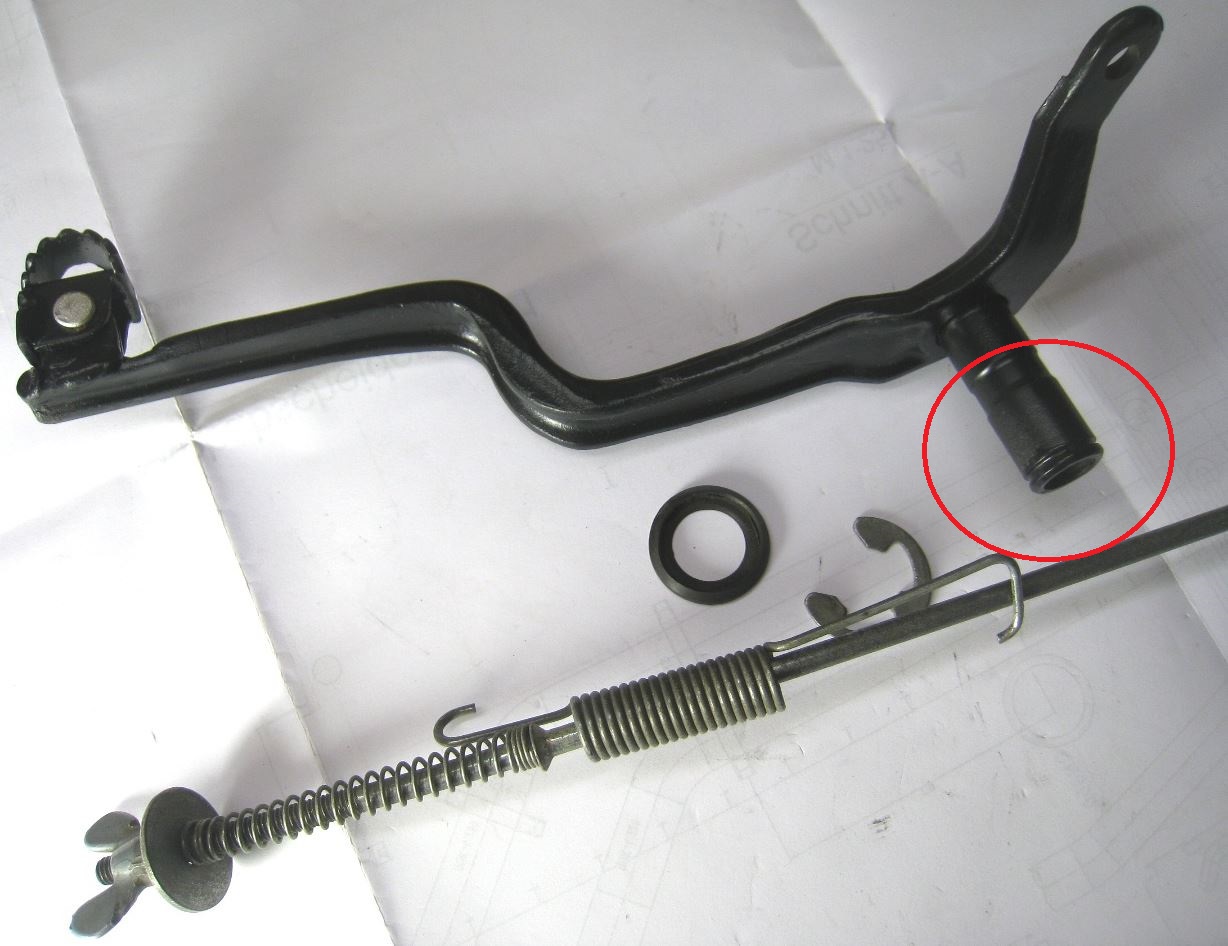 Ich habe so einen Fuss-Bremshebel irgendwo liegen, welcher wohl mal in Amiland mit einer Bohrung versehen worden ist.