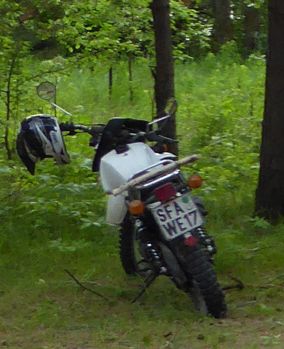 Jens hatte seinen Plastiktank draufgemacht und seine Stoßdämpfer (Austausch), Batterie und Regler erneuert (Original), bloß kochte die Batterie gleich am ersten Tag über und war fortan platt. Das blieb sie auch, was zur Folge hatte, daß er statt Bremslicht einfach ein Rücklicht hatte, das bei Bremslichtschalterbetätigung kurz ausging und dann normal weiterleuchtete. Also fuhr ich - außer den seltenen und kurzen Nachtetappen - als Nr. 2 mit fitter Heckbeleuchtung. Jens war außerdem der Küchenbeauftragte.