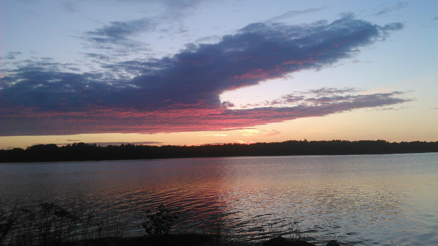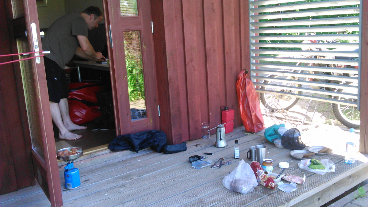 Wir taten uns nach Übernachtungsmöglichkeiten um, und ich hätte gern meinen Rücken ein wenig entspannt, indem ich auf etwas Dickerem als meiner Matte schlafe - Hütten waren in der Hochsaison direkt am Meer aber nicht zu bekommen. Schließlich durften wir unsere Zelte bei freundlichen, hilfreichen Finnen aufstellen und fuhren abends nochmal ohne Gepäck los, um im Restaurant am Fährhafen lecker zu essen.