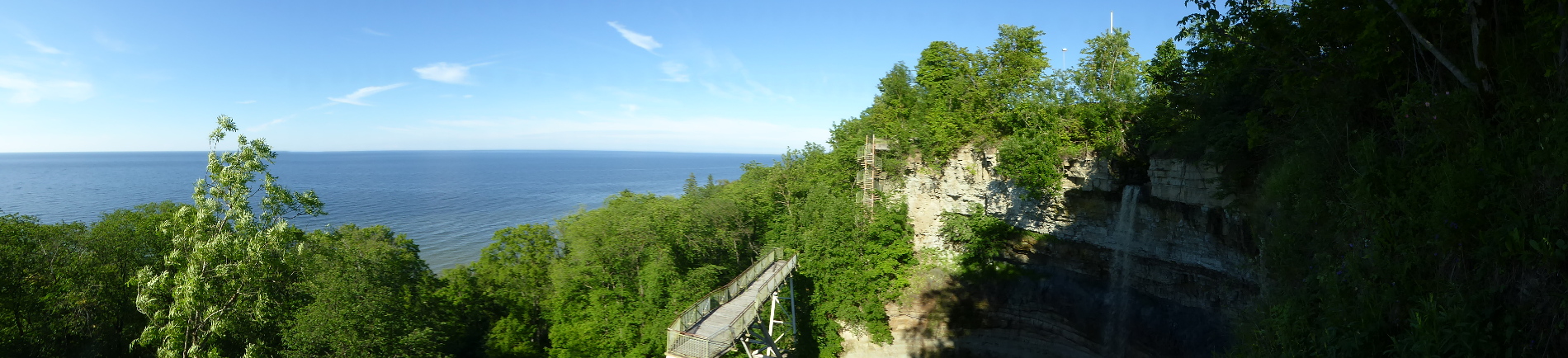 Parkplatz direkt vor der Tür, unter dem Dach des Windfangs würde man auch bei Regen Kaffee kochen und frühstücken können, und ein paar hundert Meter entfernt war die Treppe, die die Steilküste herunter und zum - dort sehr schmalen - Strand führt.