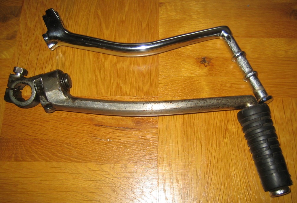 Und hier noch ein Kickstarter. Der obere Kickstarter ist neu verchromt worden und wahrscheinlich schon von Yamaha.