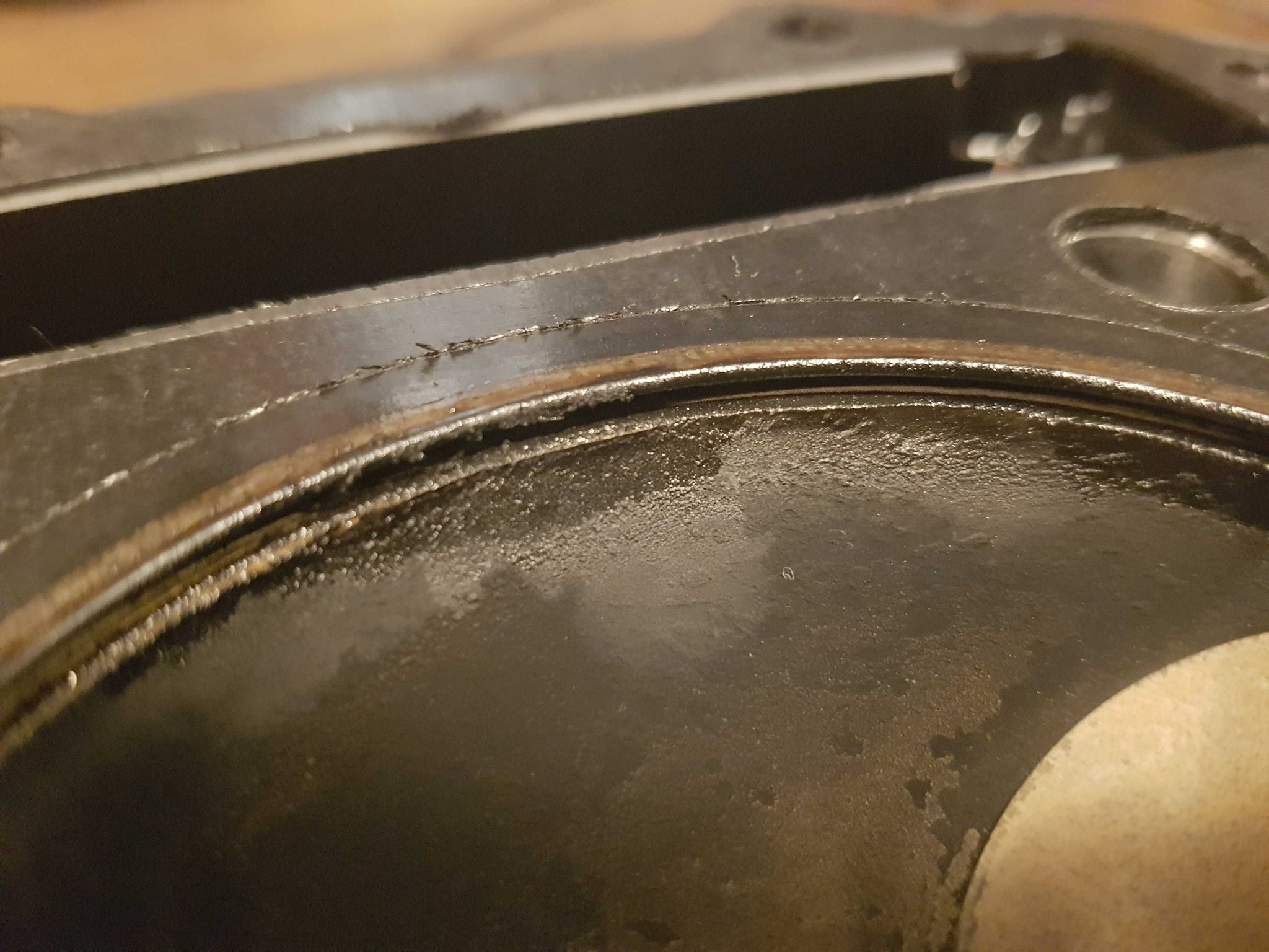 Die Laufbuchse sieht entsprechend übel zugerichtet aus. Der Bozen hat fiefe Riefen in die Wand gerissen. Ich denke man sieht an den Riefen sogar die Drehung des Kolbens.