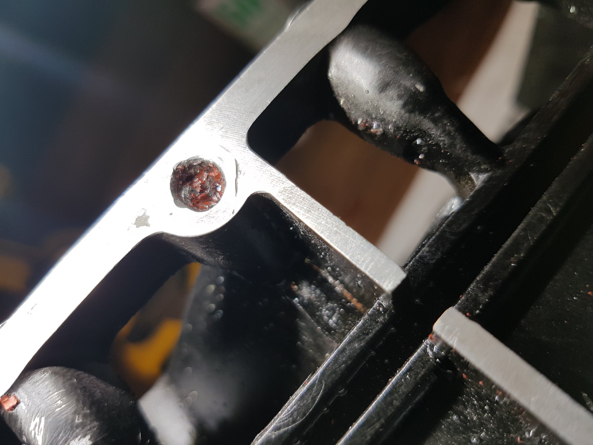 Beileid zum kaputten Motor und Geld. Ich tippe auf einen alten Bolzenclip, der zuerst gebrochen ist und dann rausgefallen.