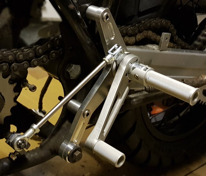 Wenn es echt nicht geht (und ich - wider besseres Wissen und trotz manigfaltiger, ernsthafter Warnungen - den legendären, unumgänglichen Katapultstart aufs Garagendach überlebe), dann kann ich ja immer noch auf Originalrasten zurückbauen oder mir das nächste fragwürdige Umbaukonstrukt dranschrauben bis ich es dann doch vielleicht "endlich einsehe".