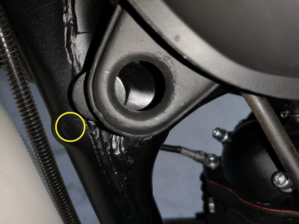 Beim Wechsel der europäischen XT's auf Alutank sind vorn die beiden Befestigungspunkte umgesetzt worden. Die ursprüngliche Position kann man sogar noch an den Ausbuchtungen am Rahmenrohr sehen.