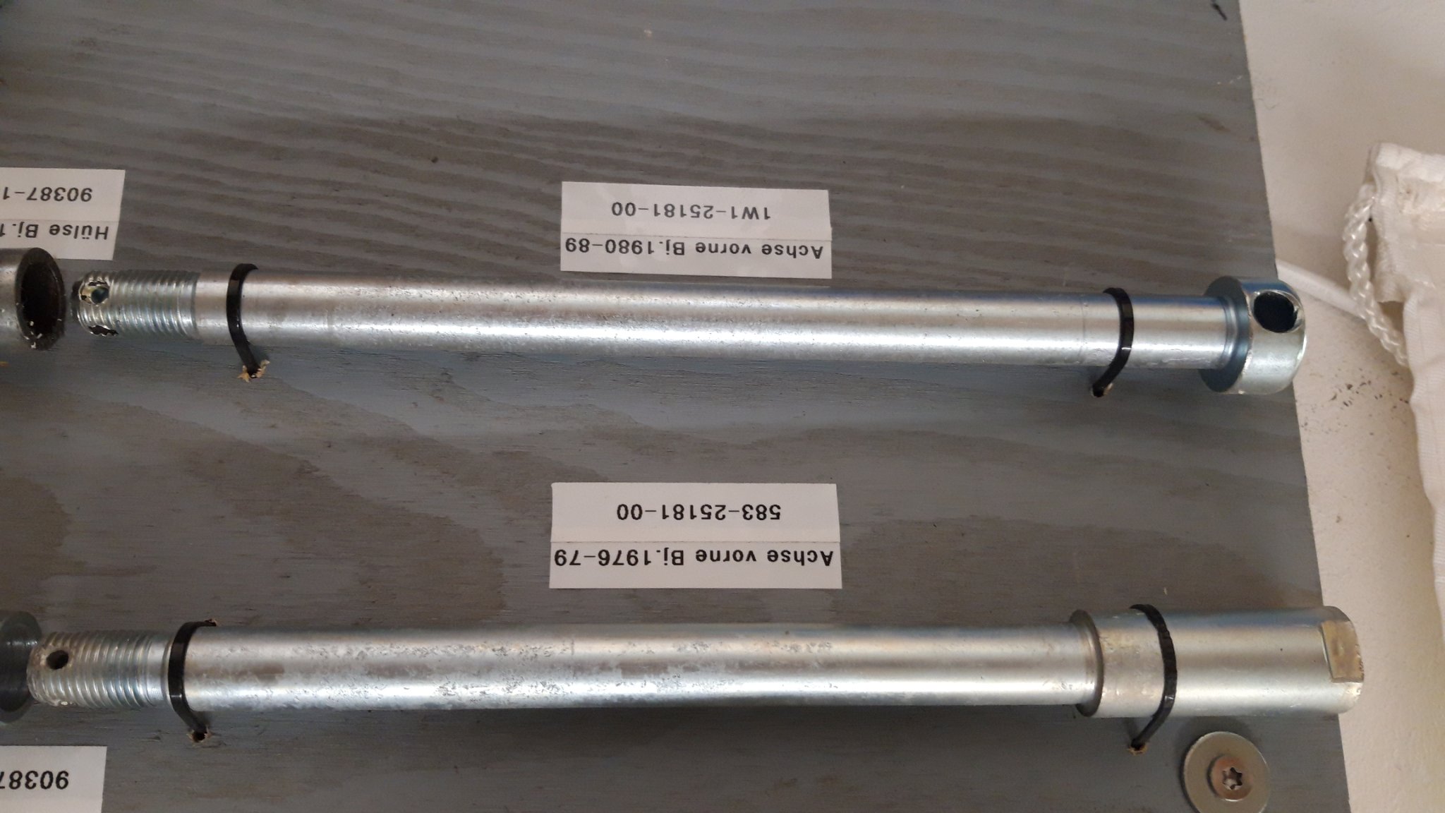 Bei meiner '77 ist eine Radachse im Hinterrad, die zu kurz ist, wenn ich die Unterlegscheibe mit den drei Nasen einbaue. Ich habe auch gesehen,dass es unterschiedliche Radachsmuttern für Vorder- und Hinterrad gibt. Ich vermute deshalb, dass ich bei der '77er eine Vorderradachse von Bj. '80 drin habe und evtl. auch noch die Mutter vom Vorderrad dran ist.