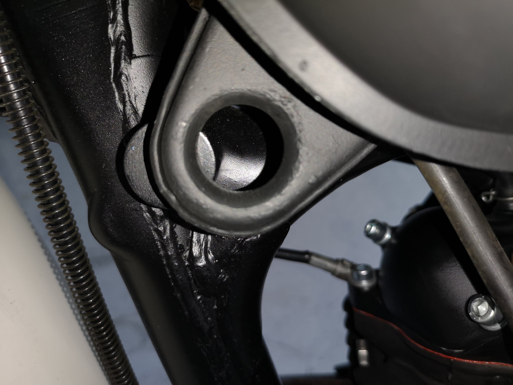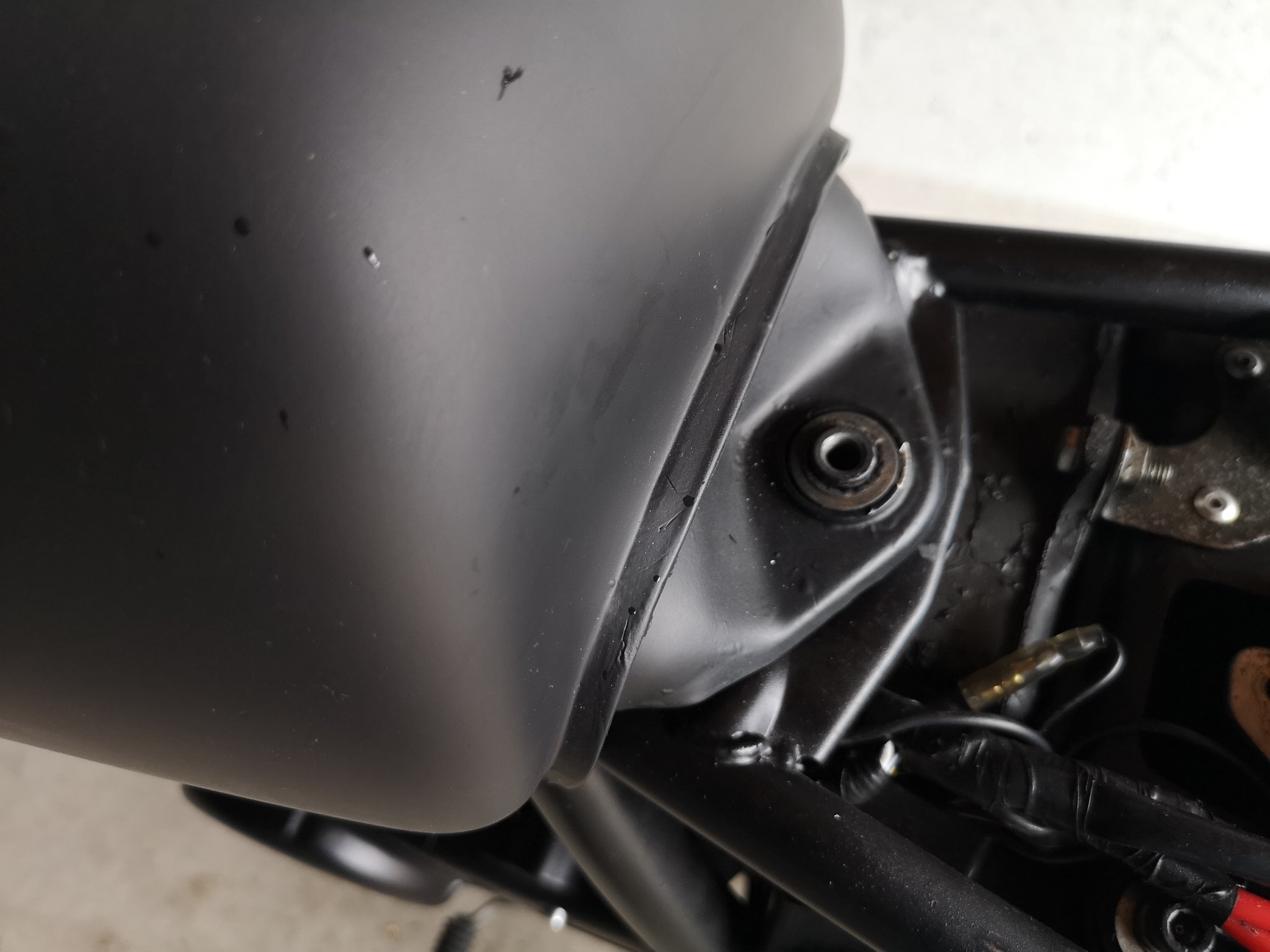 Mein Problem ist jedoch, dass der Tank von den Befestigungslaschen nicht zum Rahmen passt. D. h., ich kann ihn nicht mit den beiden vorderen Schrauben befestigen.