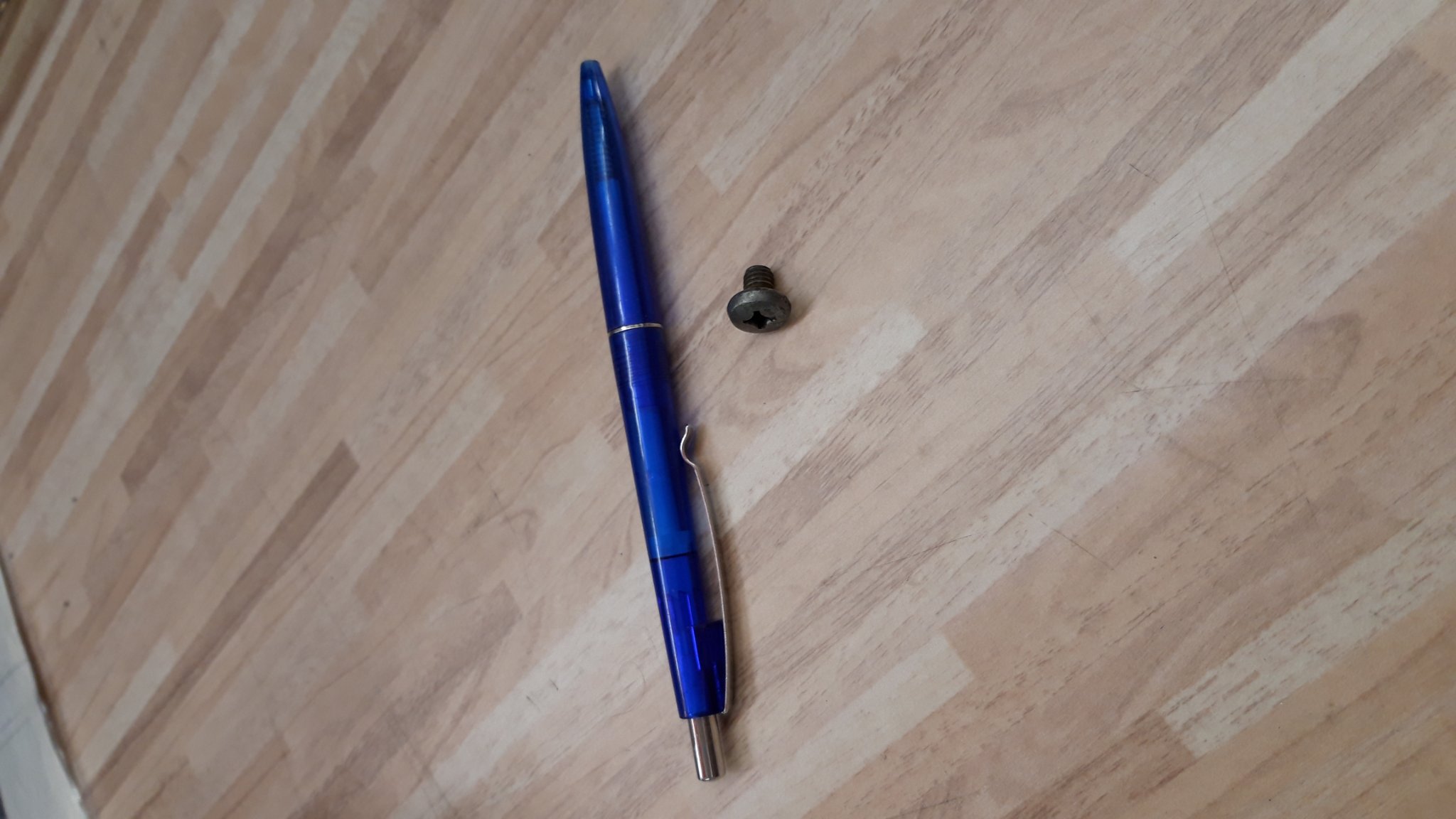 Eine der beiden Schrauben,Befestigung Benzinhahn,Anzeigeplättchen.