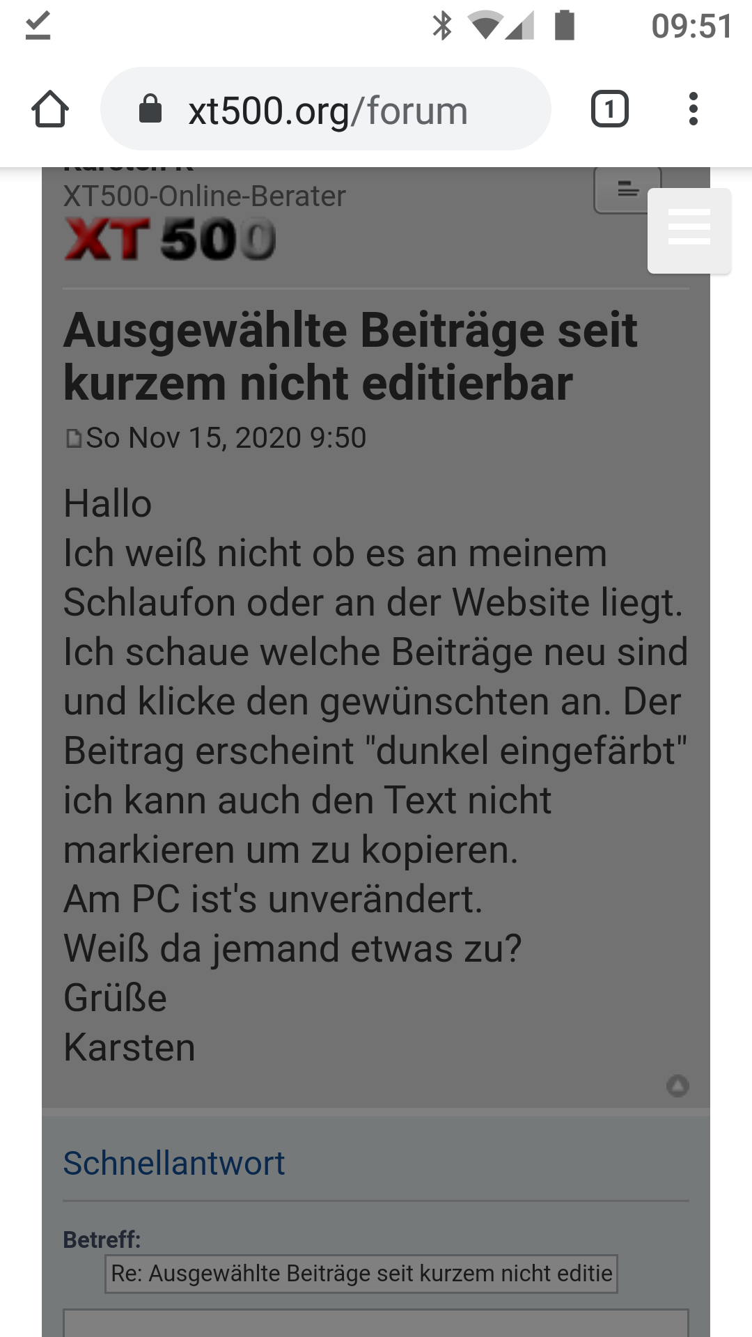 Ich weiß nicht ob es an meinem Schlaufon oder an der Website liegt. Ich schaue welche Beiträge neu sind und klicke den gewünschten an. Der Beitrag erscheint "dunkel eingefärbt" ich kann auch den Text nicht markieren um zu kopieren.
