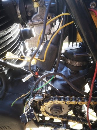 Gehst Du am Kabelbaum nach vorne, kommt ein Abzweig auf Höhe der Zündspule.