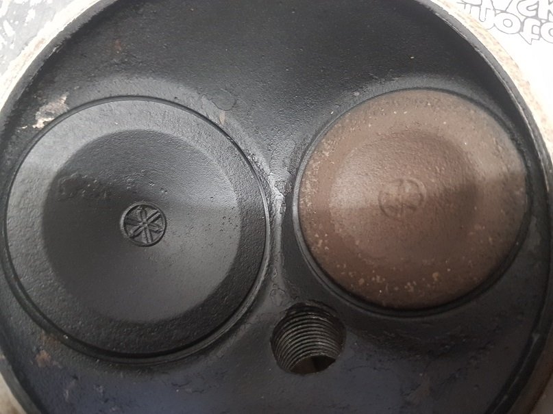 Der Kolben hat ebenfalls nur leichte Laufspuren. Für mich sieht es so aus das der Kolben / Zylinder wiederverwendbar ist. Nockenwelle und Kipphebel sind hin. Kurbelwelle wahrscheinlich weiterverwendbar.