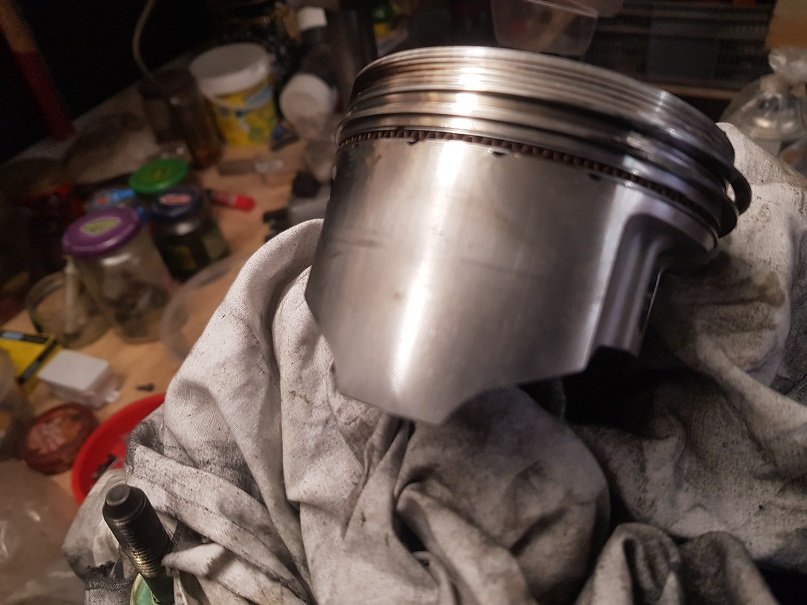 Bei der Kolben/Zylinderkombo rate ich zum Vermessen des Laufspieles weil der Zylinder schon recht poliert (spiegelnd) aussieht. Bei mehr als 0,1mm Laufspiel gerät der Zylinder nach dem honen an die Grenze, wenn er nicht schon zu tonnig dafür ist. Dann wären neue Ringe Perlen vor die Säue.