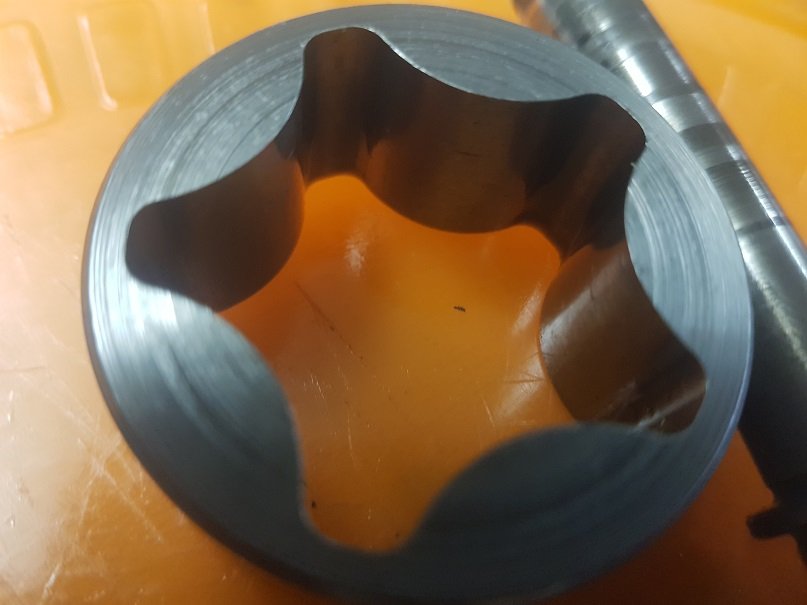 Ölpumpe ausgebaut. Sieht eigentlich sehr gut aus - ich finde dort nur vernachlässigbare Gebrauchsspuren - Der Führungsbolzen hat ein paar Laufspuren, das sollte aber die Funktion nicht beeinträchtigen. An der Nocke habe ich noch festgestellt das ein Lager sehr stark angelaufen ist. Ölmangel??? - kann aber eigentlich nicht sein.