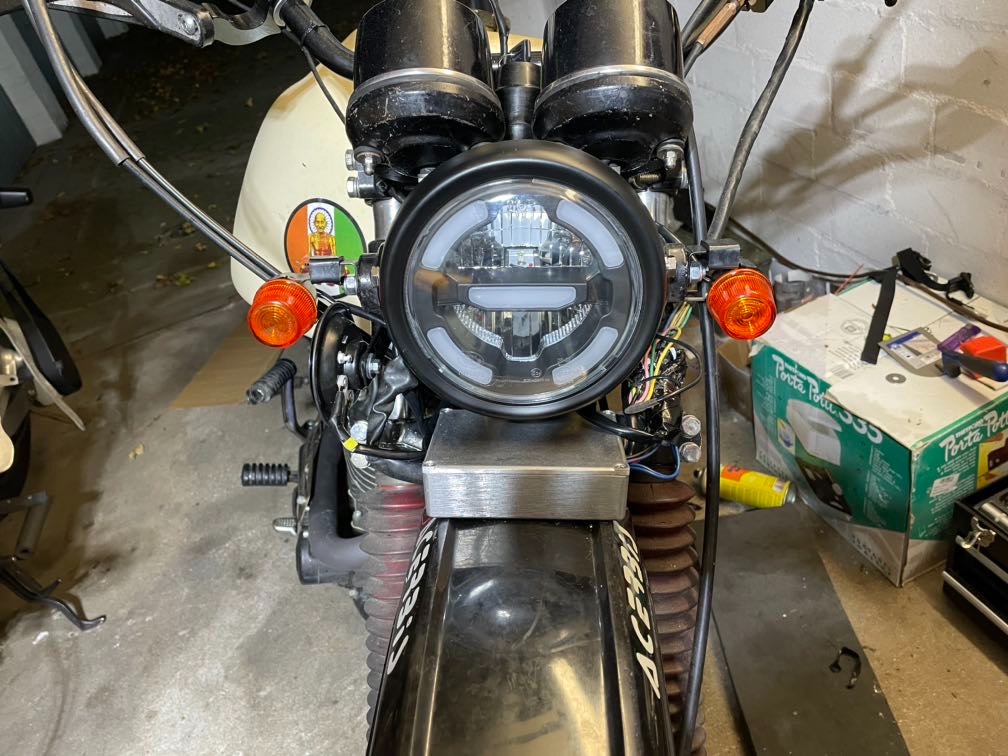 Habt ihr Ideen wo ich die Stecker aus dem Lampengehäuse lassen kann? Im Gehäuse des LED Scheinwerfers ist kein Platz. Im Moment denke ich über eine Alubox zwischen Lampe und Schutz“blech“ nach mit drei Lochfräsungen (rechts, links, hinten). Hat das schonmal jemand gemacht oder gibt es noch bessere Ideen?