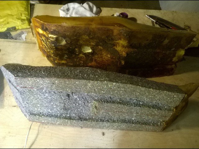 Erst aus Verbundschaum einen Kern geschnitzt. E-Messer und Flex mit Drahtbürste ( siehste aus wie eine S...) .