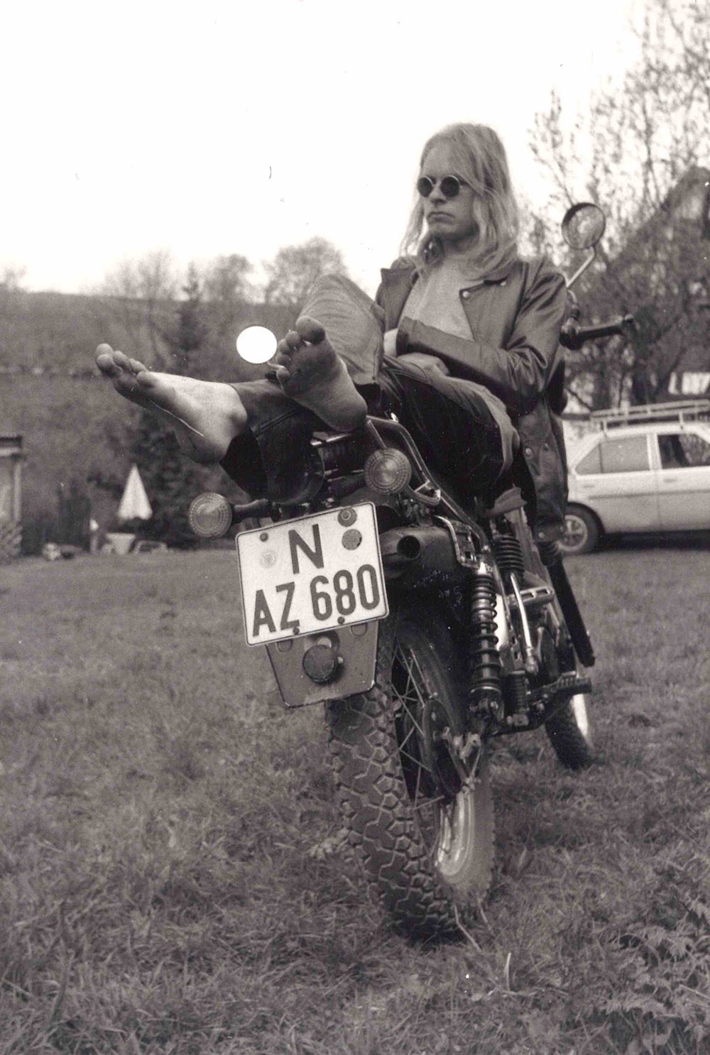 Hier sind gleich drei erste XTs zu sehen, wohl 1979 aufgenommen, kurz vor dem Aufbruch zum Austoben im Gonsenheimer Sand, glaub ich ...