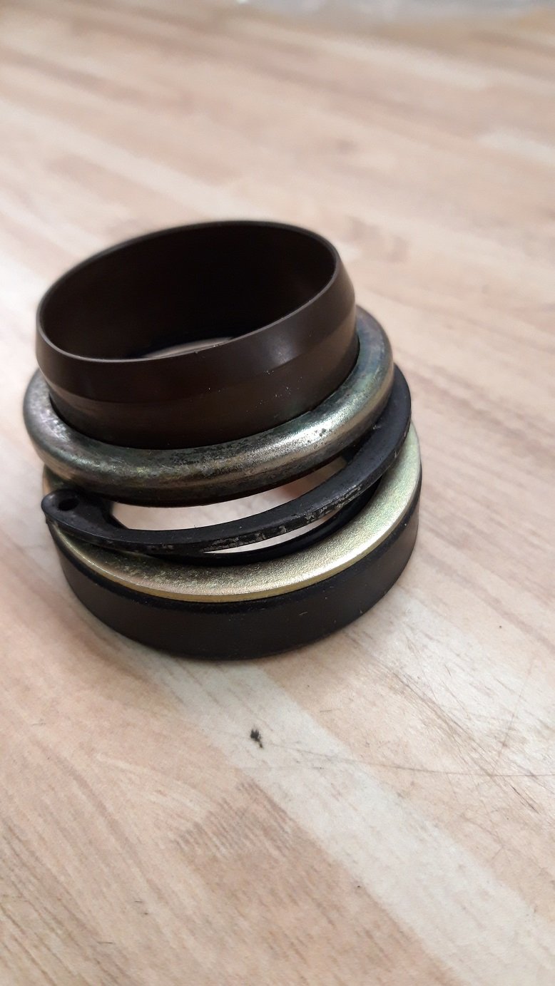 und das hier ist die Staubkappe von Bj 86-89 da ist der Messingring etwas dicker ausgeführt und die Staubkappe hat ein schmaleren Bund, kann man auf den Bild jetzt nicht so gut sehen