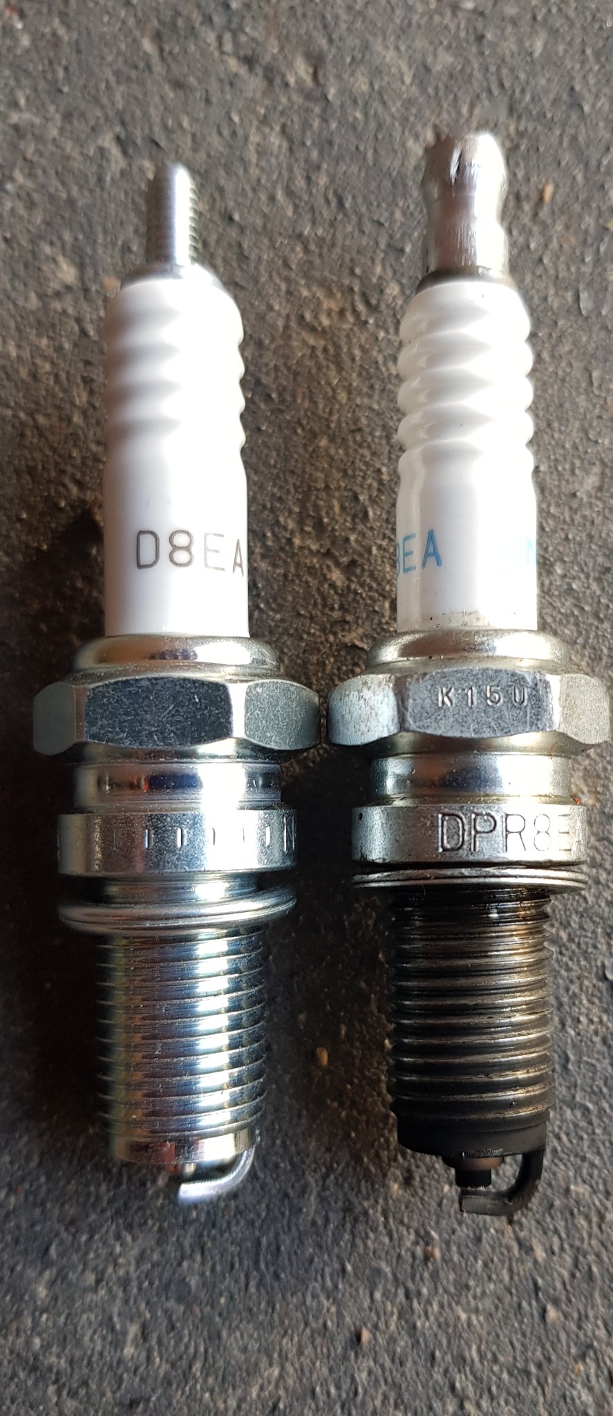Die zwei Kerzen sind verschieden, die Rechte ist die Richtige, DP(R), mit vorgezogener Funkenlage.