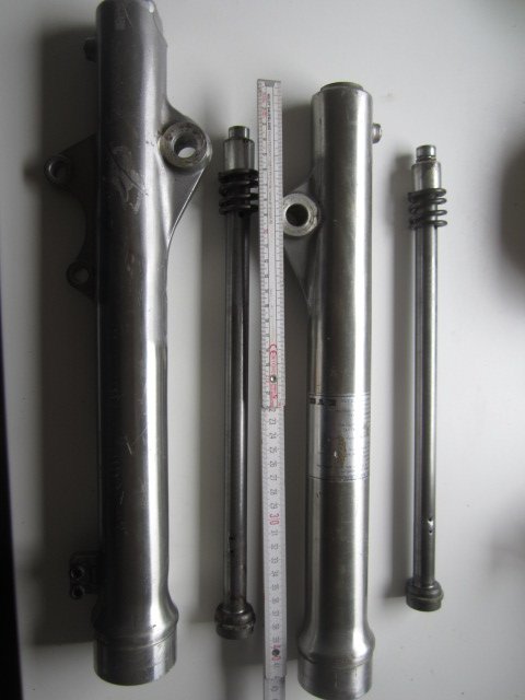 die Standrohre sind verchromt und in den Gabelbrücken geklemmt, die Tauchrohre sind aus Alu mit der Achsaufnahme, so ist die herkömmliche Definition.