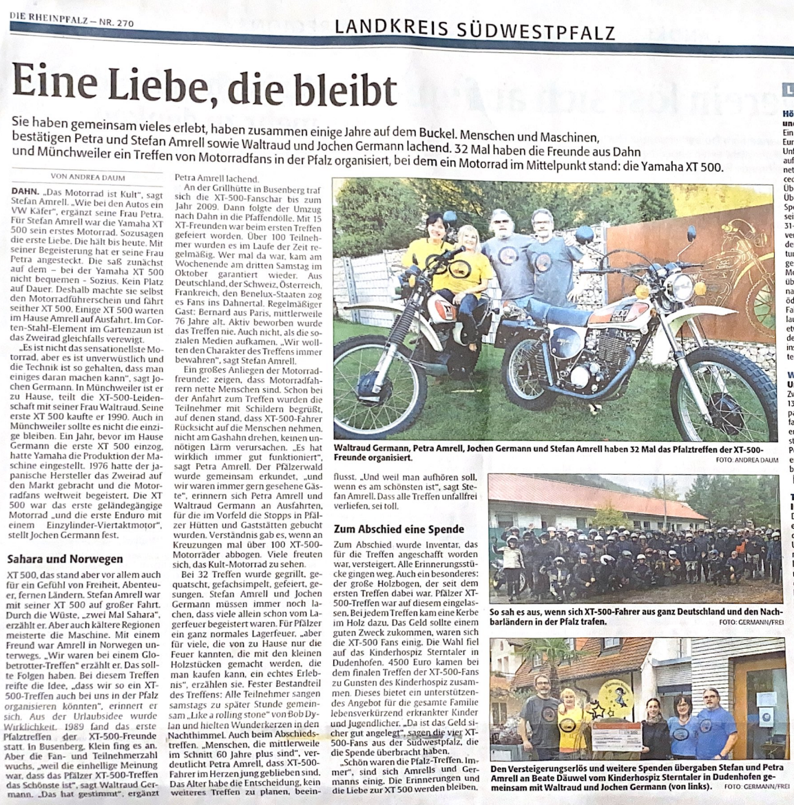 Vielen Dank für die schönen Pfälzer XT Treffen und die diesjährige Spendenaktion.