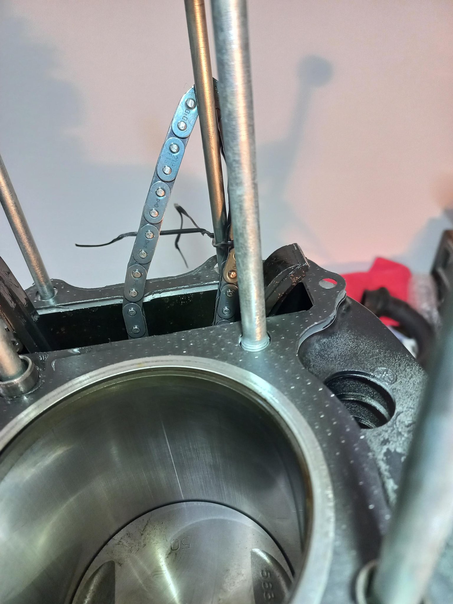 Dem Foto nach ist die Laufbuchse nicht gebohrt und gehont worden, sondern nur ein neuer(alter?) Kolben reingekommen. Lieg ich da richtig? Die Kratzer in der Zylinderwand sehen nach Strahlsand aus.