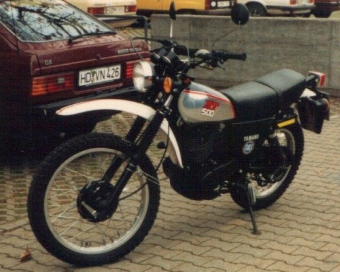 Auffällig : 28mm Lenker, nur Tacho, XT550 Gabel, lange Bilstain, gemachter Kopf ( Hudriwudri ), Hiha Nocke, 12V Roebi, Sitzbank abgepolstert und gekürzt ( ohne Blechteil )