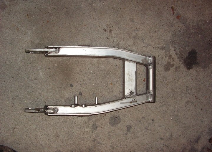 Did you lower the swing arm pivot in the frame? It looks as if your swing arm is quite steep. I guess that works well for you anyway? Also what kind of swing arm ist that? Suzuki? Looks modified too.