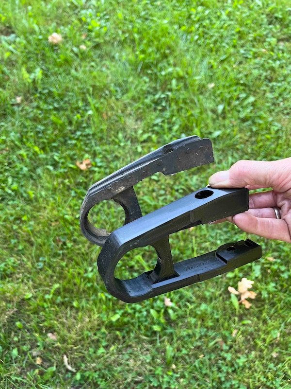 Die DR Schwinge ist nicht ganz so plug-and-play wie hier und da im www behauptet wird. Vorne passt es gut, mit oroginalen XT Lagern, Schalen und Achse. Allerdings muss dann der originale DR Schwingenschleifer (sofern man einen findet) geweitet werden. Auf Kleinanzeigen findet man einen Typen der DR 500 Schleifer und andere Teile aus dem 3D Drucker anbietet, das ist inzwischen einigermaßen haltbar. Der hat mir einen zu echt fairem Preis gedruckt mit größerem Durchmesser und einen als Ersatz.