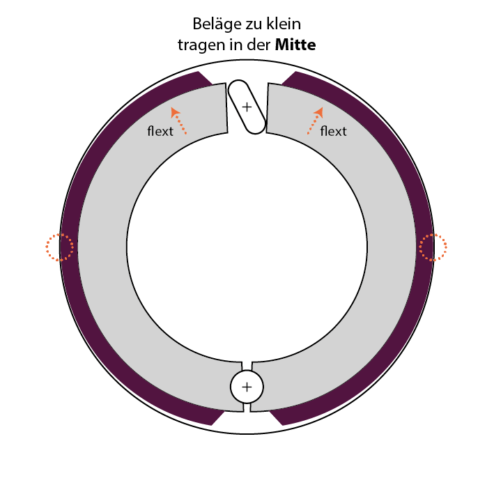 Trotzdem tragen bei beiden nagelneuen Beläge nur in der Mitte.